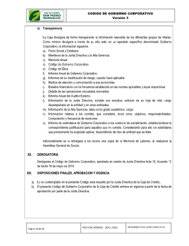Página 19 de 20 FECHA DE VIGENCIA: 26/01 /2021 APROBADO POR JUNTA DIRECTIVA