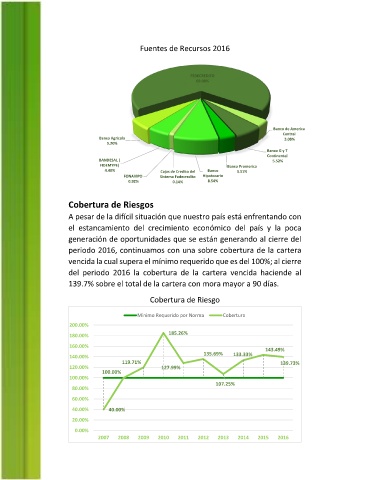 periodo 2016, continuamos con una sobre cobertura de la cartera