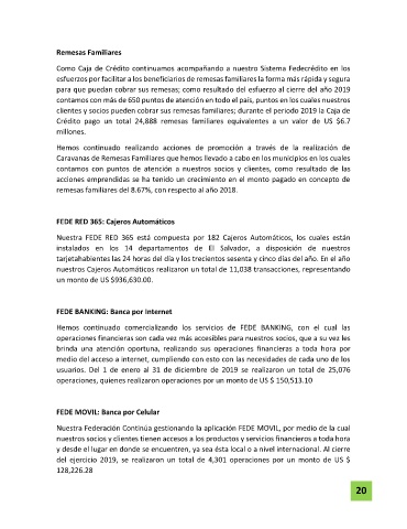 clientes y socios pueden cobrar sus remesas familiares; durante el periodo 2019 la Caja de