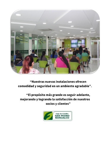 “Nuestras nuevas instalaciones ofrecen comodidad y seguridad en un ambiente agradable”. “El propósito más grande es seguir adelante, mejorando y logrando la satisfacción de nuestros socios y clientes”