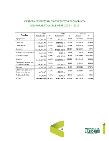 CARTERA DE PRÉSTAMOS POR SECTOR ECONÓMICO