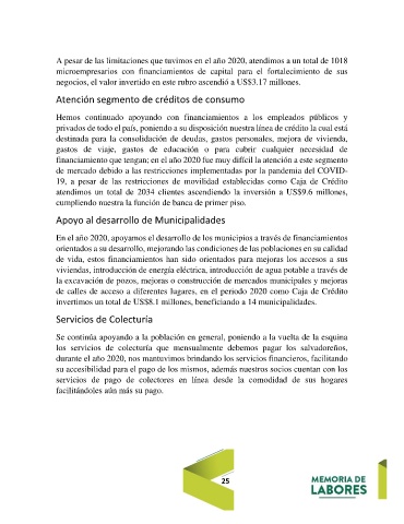 durante el año 2020, nos mantuvimos brindando los servicios financieros, facilitando